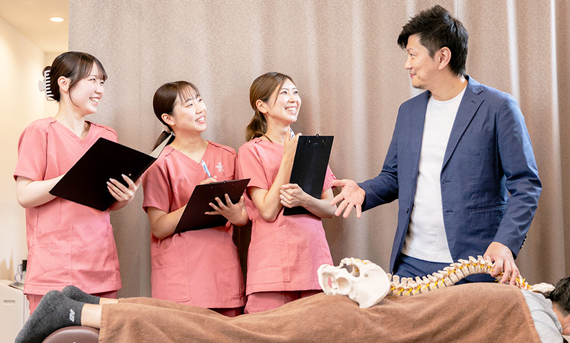 何かあった時にはいつでも相談に乗ってくれる院長がいます。院の垣根もなく、何かあればすぐに駆け付けてくれるエリアマネージャーもいます。治療家は心身ともに豊かである必要があります!その環境づくりにこだわっていきます。