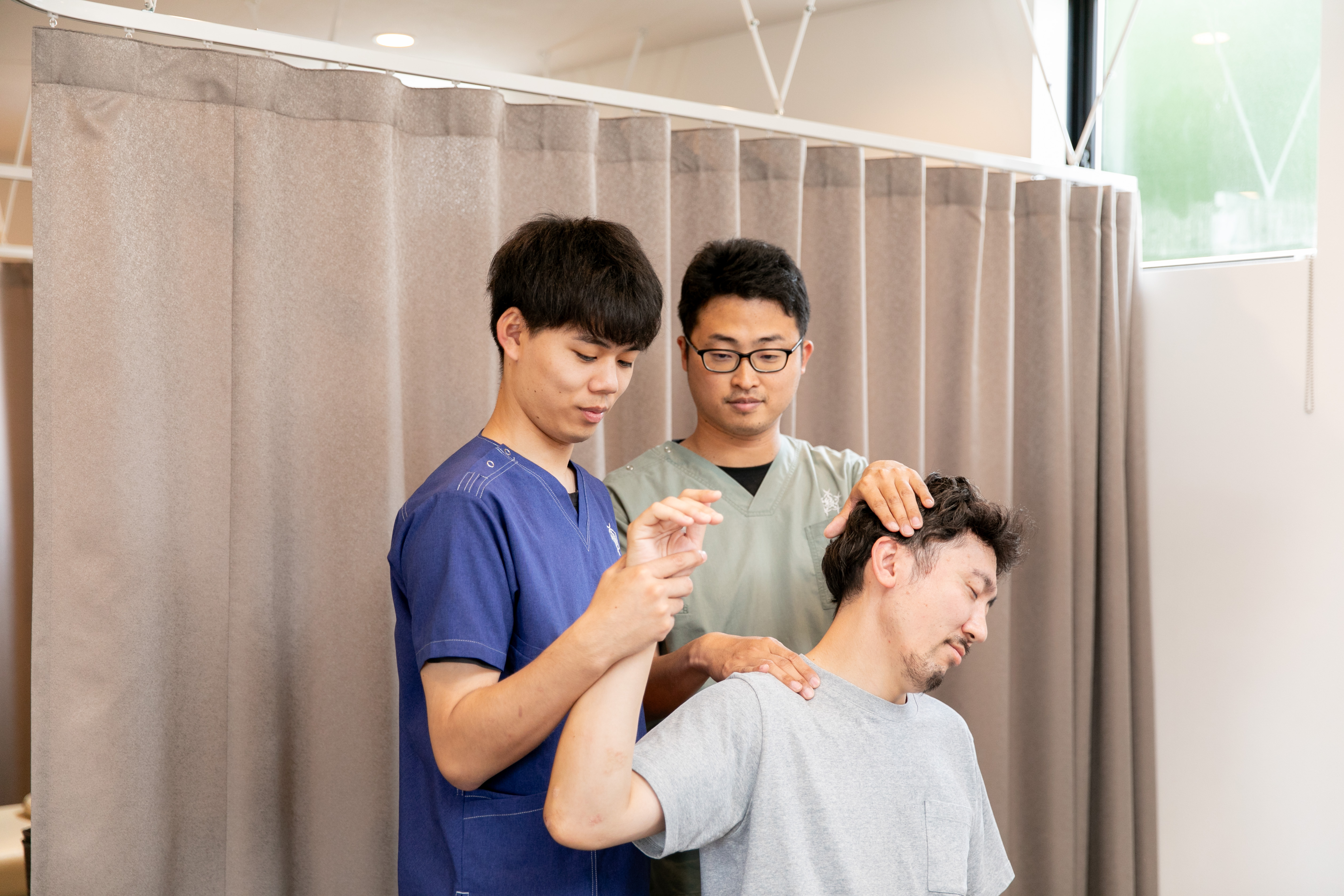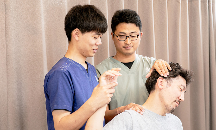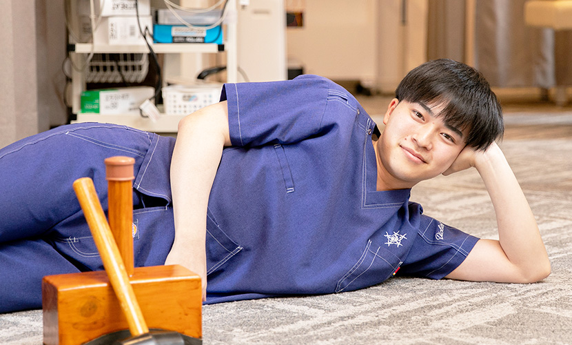 患者さんが『ここに来てよかった』『おかげで楽になった』と⾔ってくれるときが⼀番やりがいを感じる瞬間ですね。特に⻑く通ってくださった⽅が完治したときには、⼤きな達成感を感じます。⼈の⽣活を⽀えたり、痛みから解放して笑顔にできる仕事なんだと実感します。体の調⼦が悪いと⼼も落ち込みがちになりますが、その部分もケアして、患者さんが元気を取り戻せるような施術を⼼がけています。痛みを理解し、共感することができる施術者でありたいです。